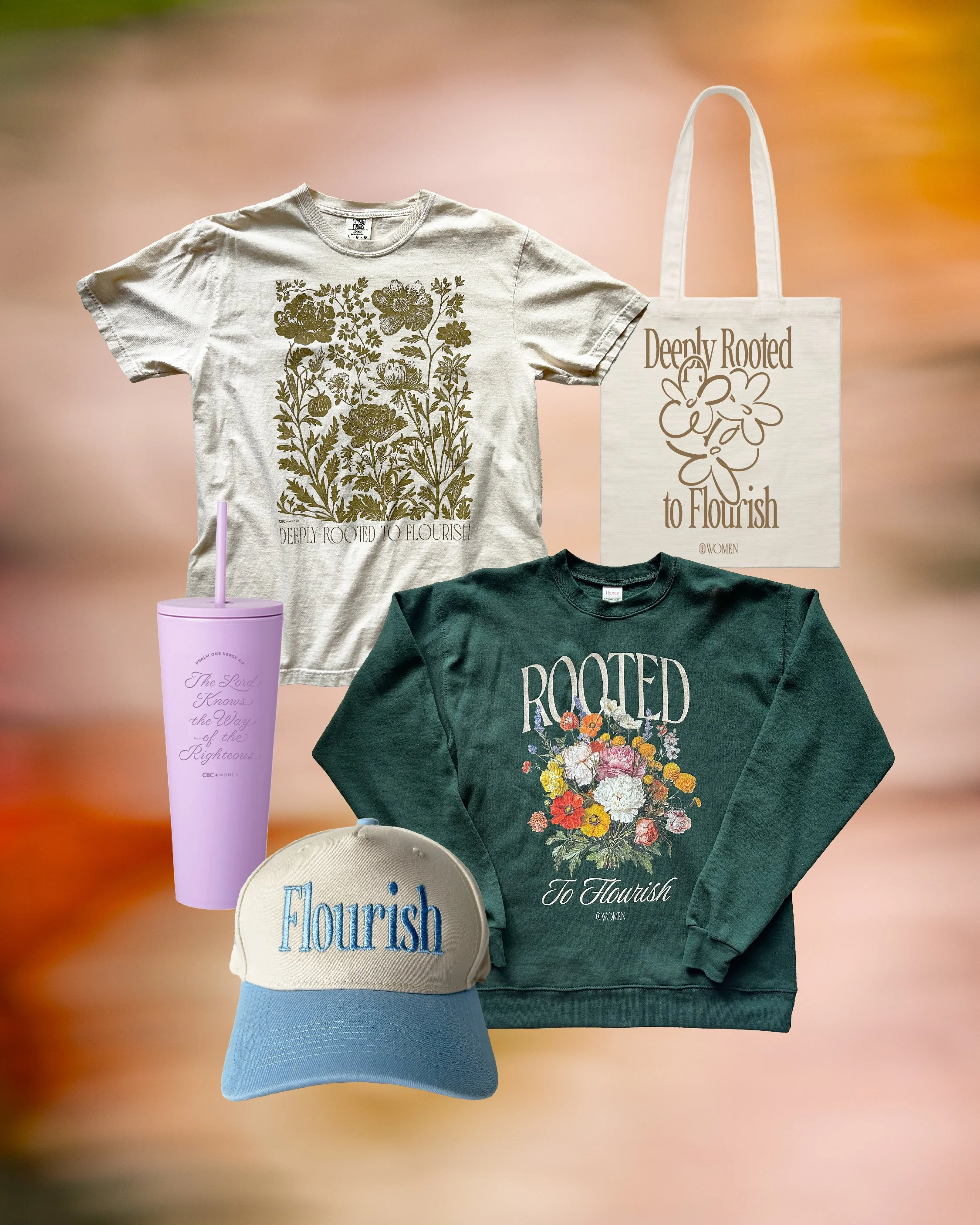 With the help of an incredible styling and photography team, I had the privilege of leading the visual direction for Community Bible Church’s 2025 Women’s Conference, which carried the theme Rooted to Flourish, inspired by Psalm 1:1–6. The heart of the design came from using floral imagery as a symbol of spiritual growth and flourishing.